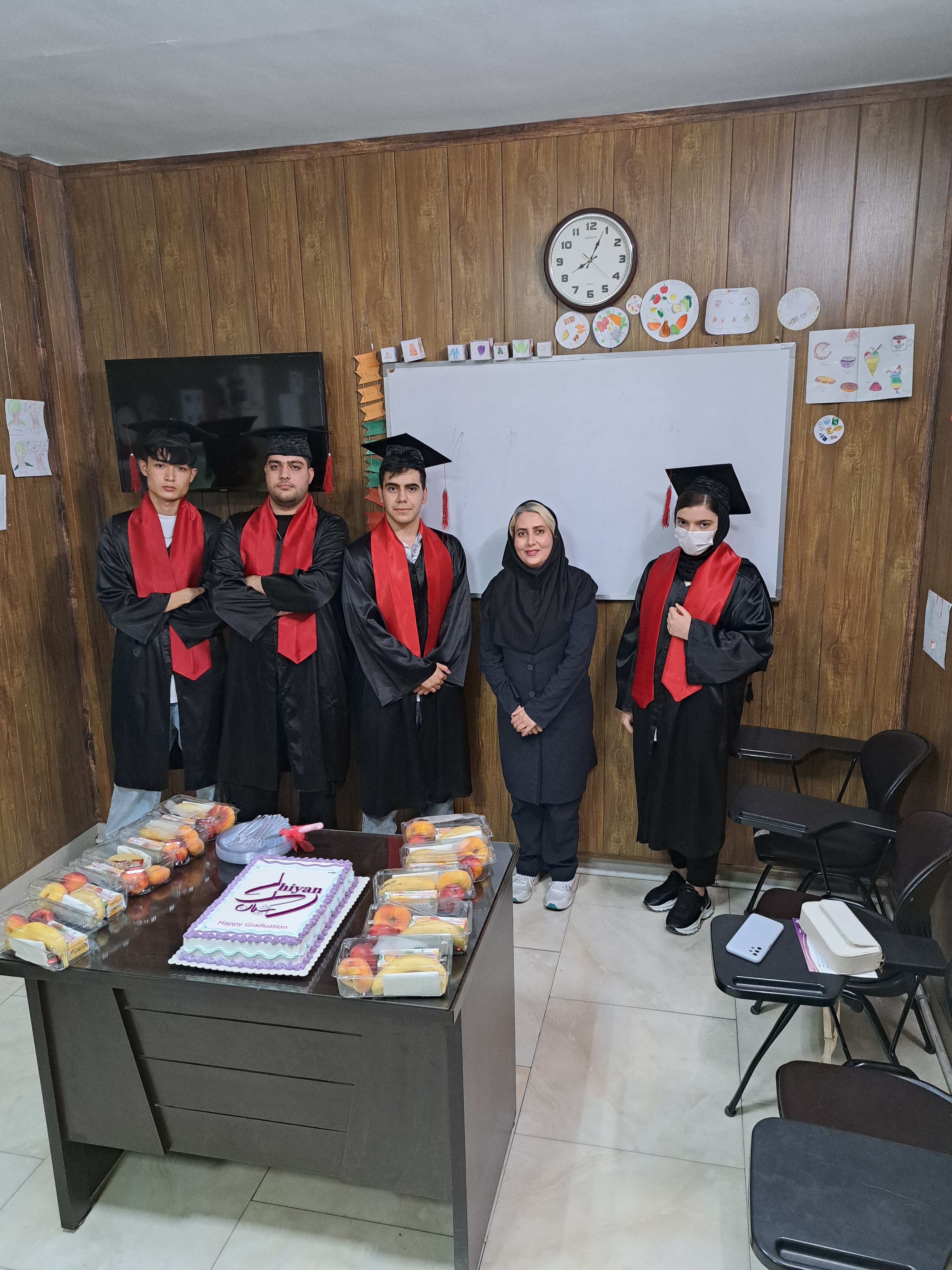 برگزاری جشن فارغ التحصیلی دانش آموزان با حضور مدیر محترم آموزشگاه( سرکار خانم رجب زاده)، معلم پرتلاش (سرکار خانم قطبی) و پرسنل آموزشگاه.