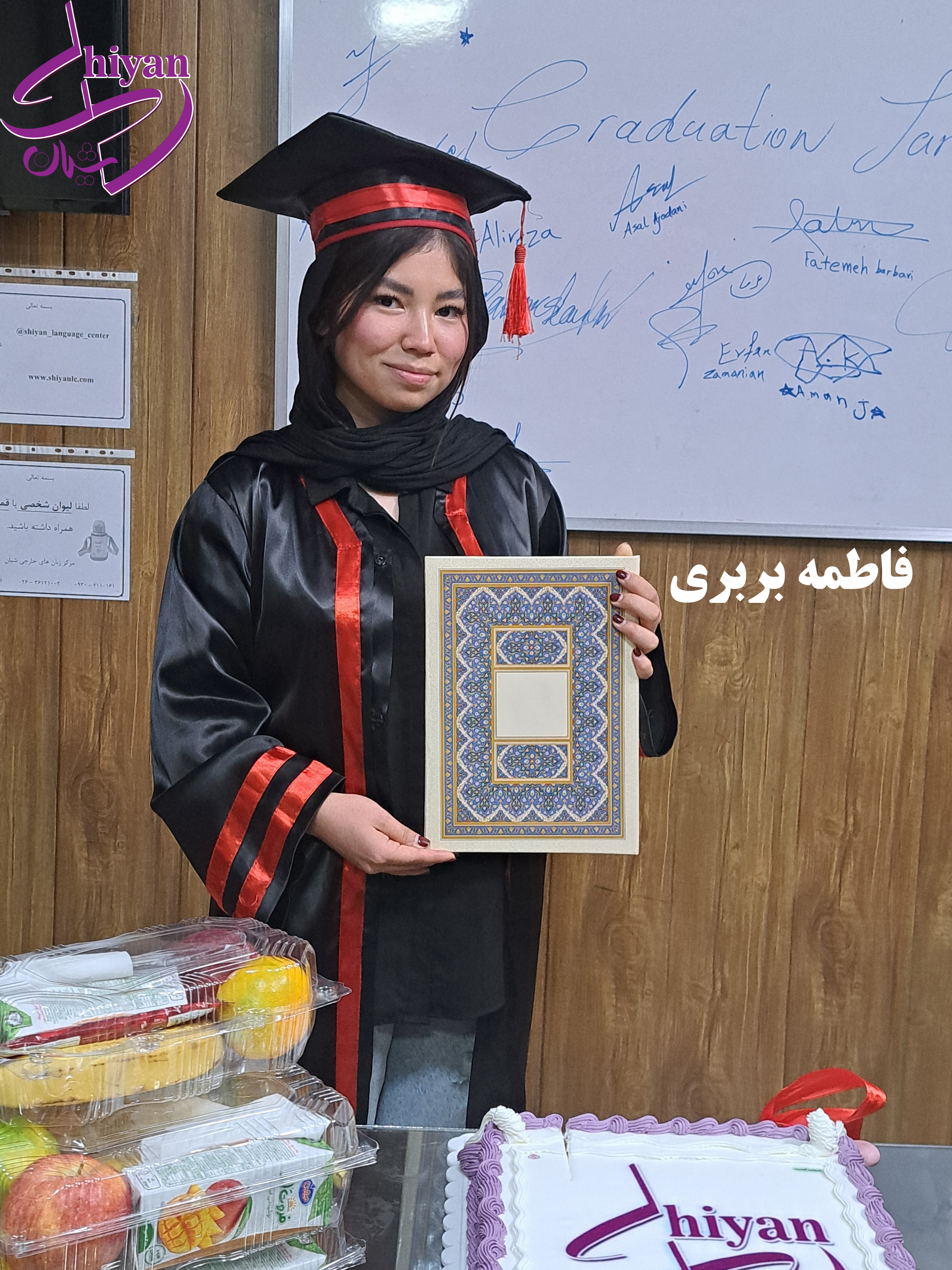 در این جشن دیپلم زبان آموزان نیز توسط خانم رجب زاده به هرکدام از زبان آموزان تقدیم گردید.